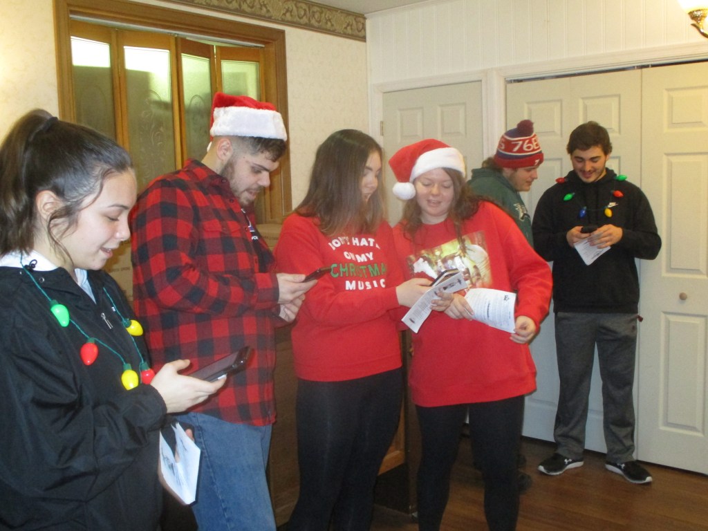 Students sign Christmas carols for nursing home residents.